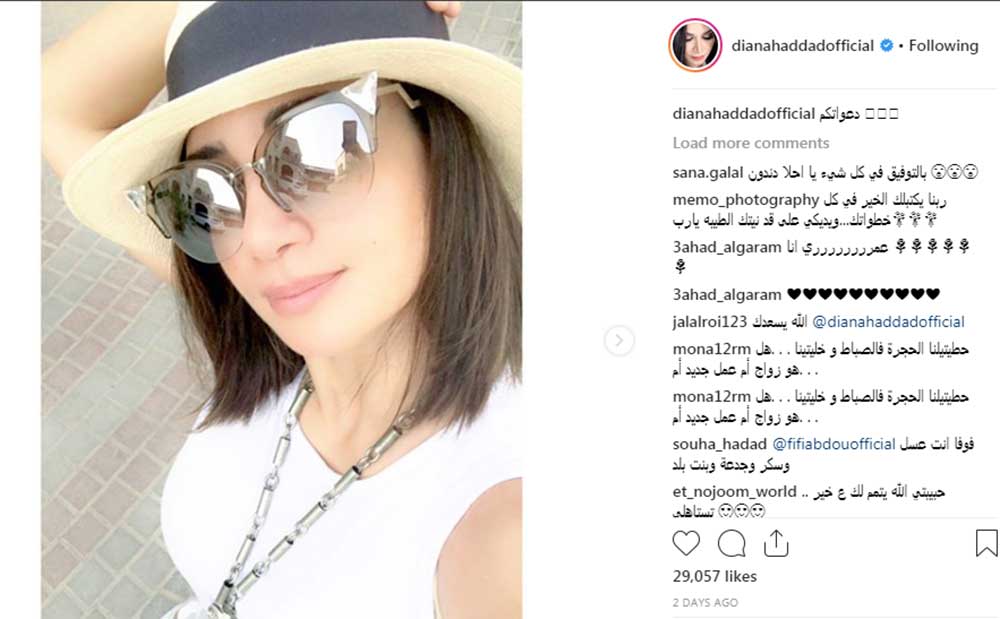وتفاوتت التساؤلات في التعليقات الواردة حول ما اذا كانت ديانا حداد قد أعلنت زواجها للمرة الثانية أو تستعد للإرتباط في الأيام المُقبلة.