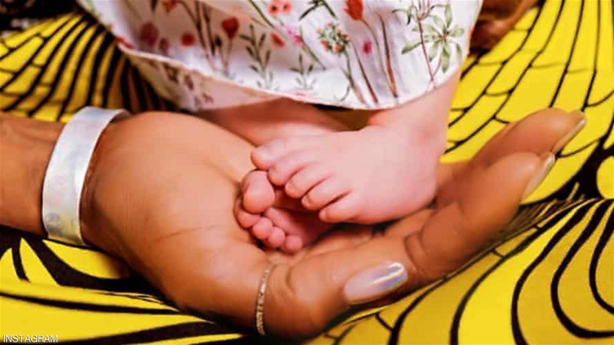 ونشرت عارضة الأزياء على إنستغرام، صورة لها وهي تضع قدمي الطفلة في يدها، بحسب ما ذكرت الأسوشيتد برس.