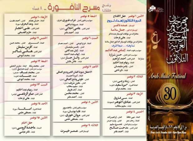 امتلأت أجواء القاهرة والمحافظات المجاورة، في عام 2021، بأجمل الأصوات الموسيقية في مصر والوطن العربي من خلال الفعاليات المميزة لمهرجان الموسيقى العربية العريق في دورته الـ 30، والتي أقيمت في دار الأوبرا المصرية بجميع فروعها.