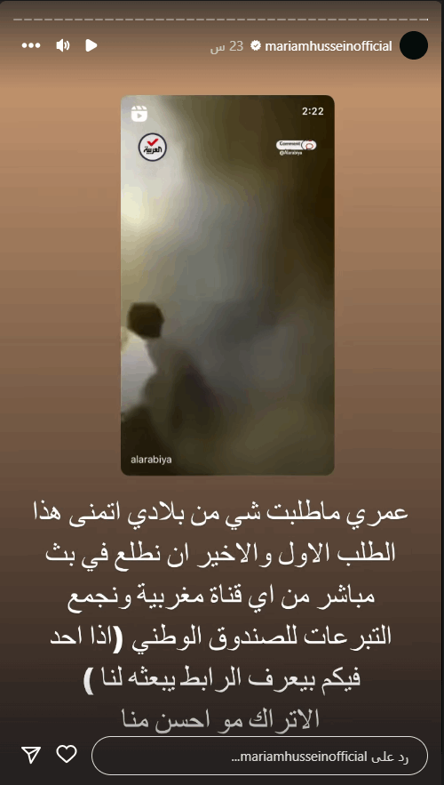 مريم حسين توجه نداء للفنانين بعد زلزال المغرب (صورة)