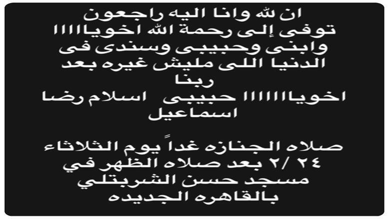 كما أعلن شقيقها حمادة رضا الخبر ذاته عبر منصاته الاجتماعية.