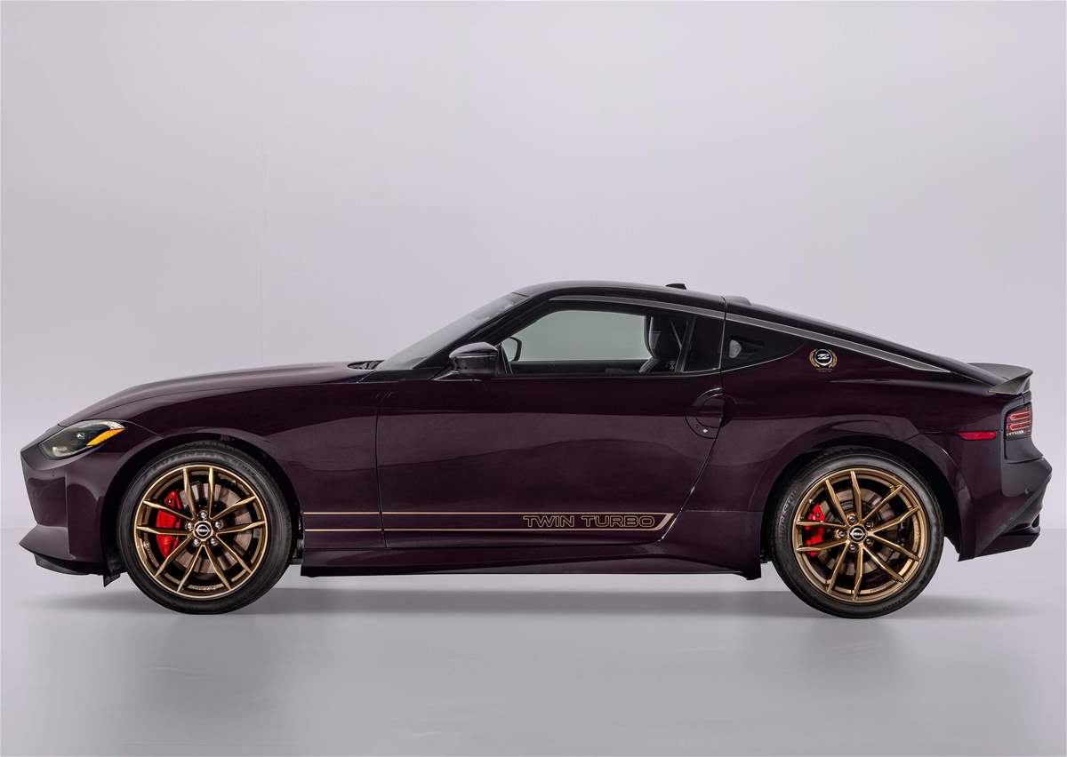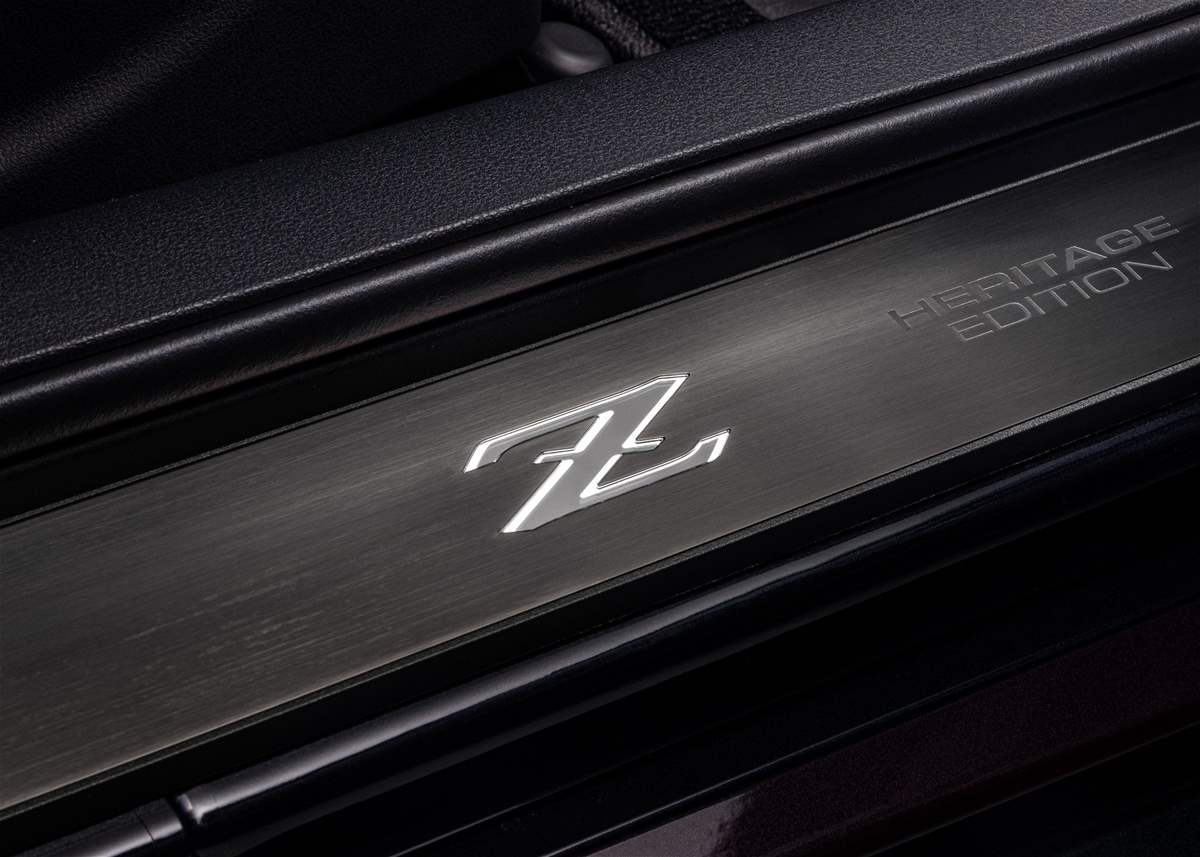 تلفت طراز نيسان Z Heritage Edition نظرك من الوهلة الأولى، عبر لمسات اقل ما يقال عنها بأنها جذابة للغاية تتزين بجنوط برونزية بقياس 19 بوصة تلمع كأنها تحكي قصة من الماضي، وجانح خلفي مصنوع من الكاربون فايبر يحمل بفخر شعار Twin Turbo، بينما يسرق الطلاء البنفسجي الأسطوري Midnight Purple الأضواء بلمعانه الأخّاذ، في إشارة مباشرة إلى هوية Z التاريخية.