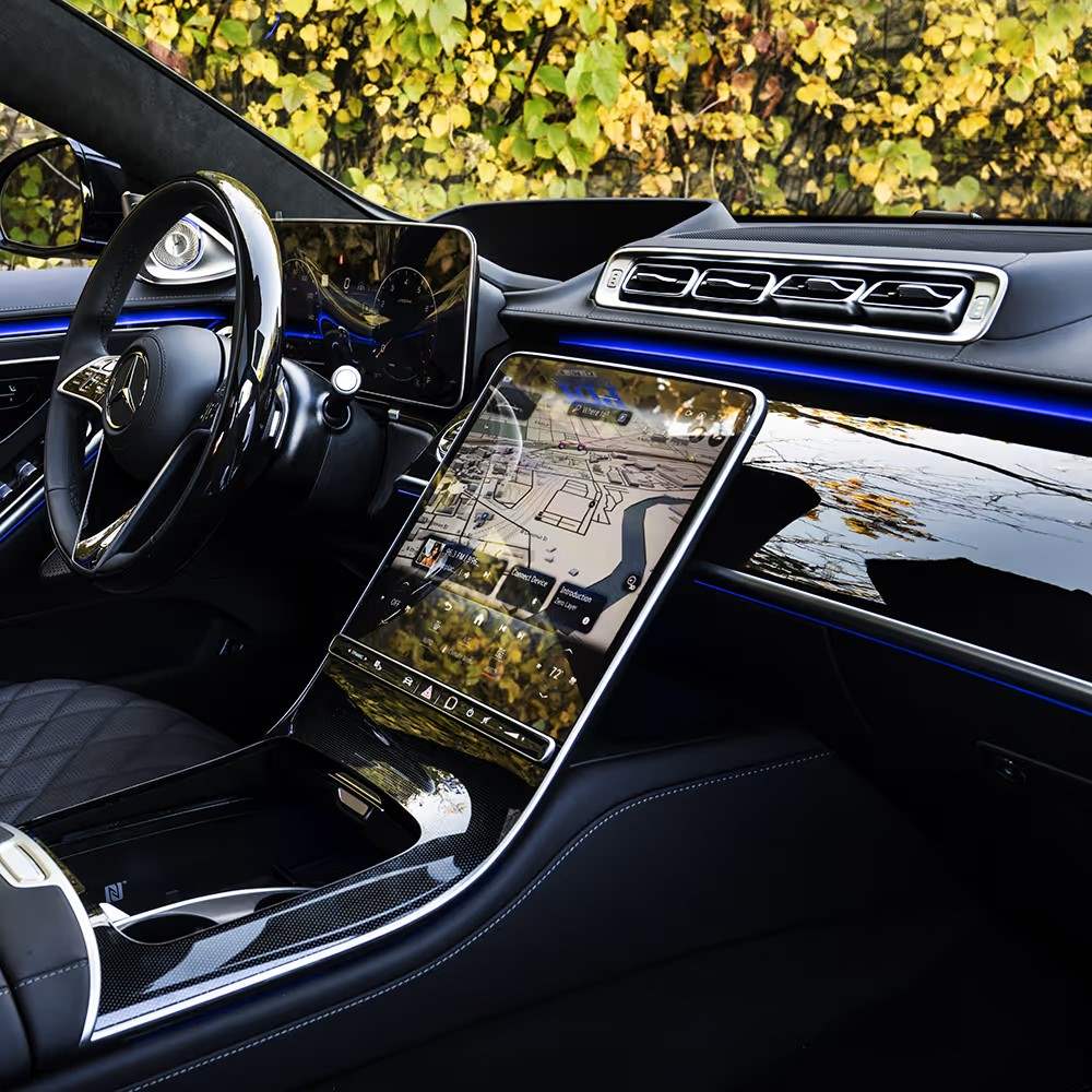 تعيد S-Class تعريف الرفاهية الهادئة. الجلد، الخياطة، الإضاءة، مقاعد تشعرك وكأنك في جناح فندقي. التكنولوجيا موجودة بقوة، من شاشة OLED العملاقة إلى النظام الصوتي المتقدم، ولكنها تأتي بطريقة أكثر انسجاماً وأقل صخباً. مرسيدس تعرف جمهورها جيداً: الفخامة أولاً، ثم التكنولوجيا.