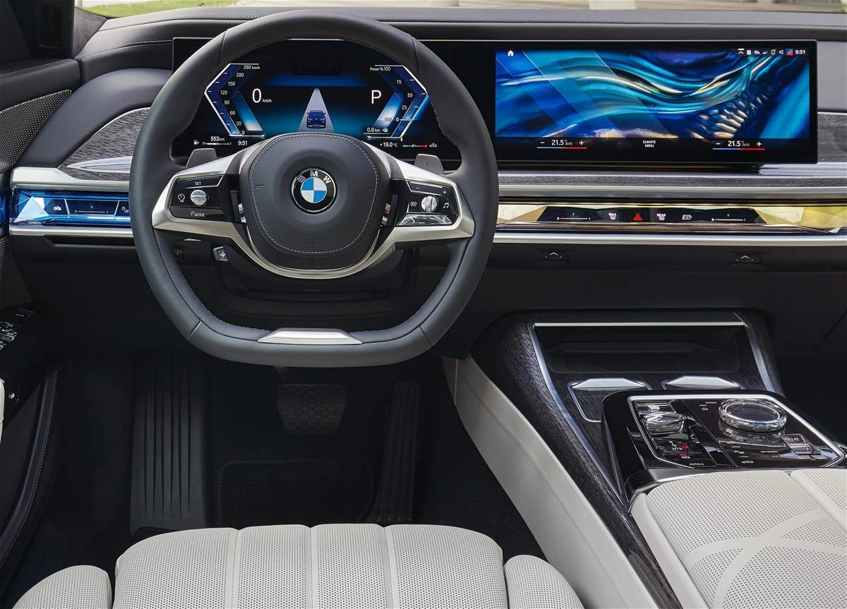 شاشة منحوتة ضخمة، شريط ضوئي تفاعلي يمتد على عرض لوحة القيادة، ونظام ترفيهي يضم شاشة بحجم 31 بوصة للمقاعد الخلفية. تجربة أقرب لقاعة سينما متنقلة. ومع ذلك، هذا التركيز على التكنولوجيا يطغى أحياناً على بساطة الاستخدام، وهو انتقاد سمعته بي ام دبليو كثيراً من الصحافة المتخصصة.