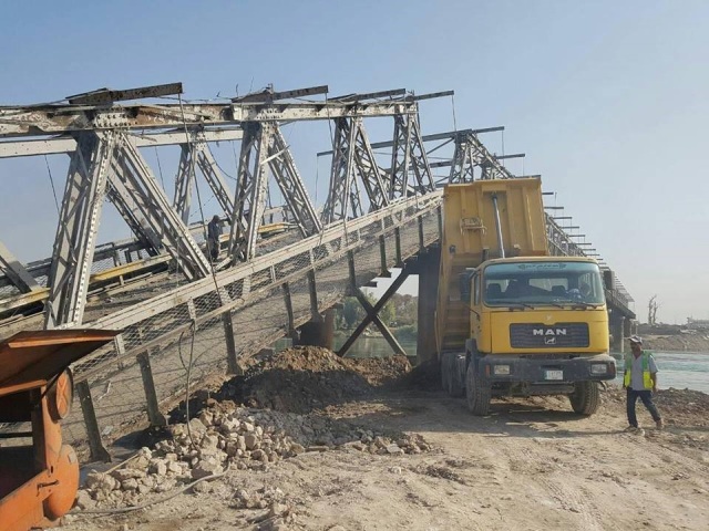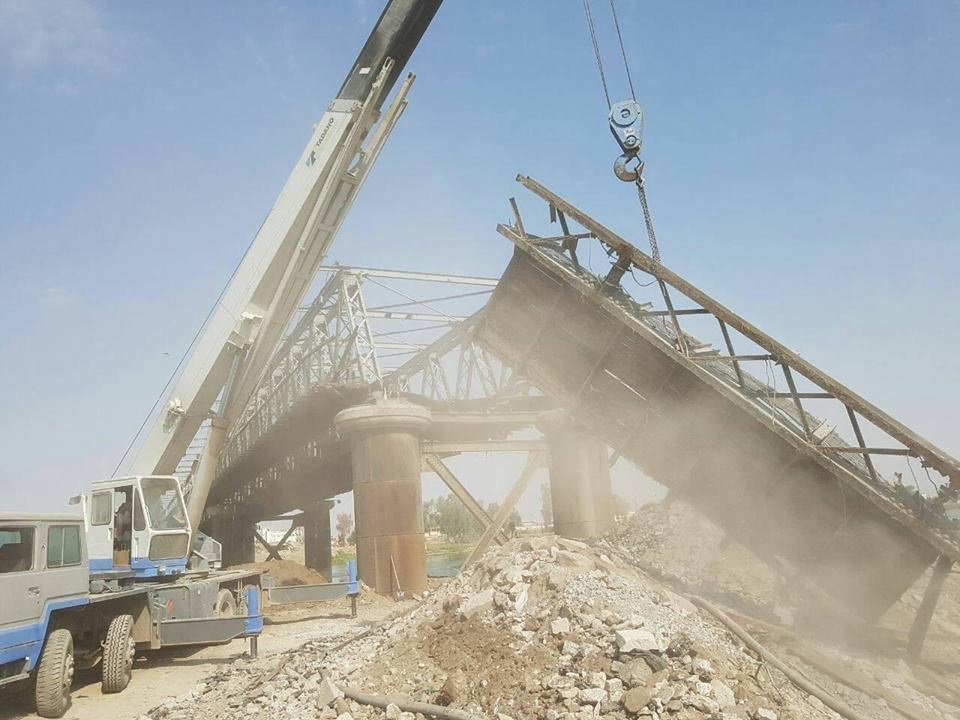 بالصور .. المباشرة بتأهيل جسر الموصل القديم