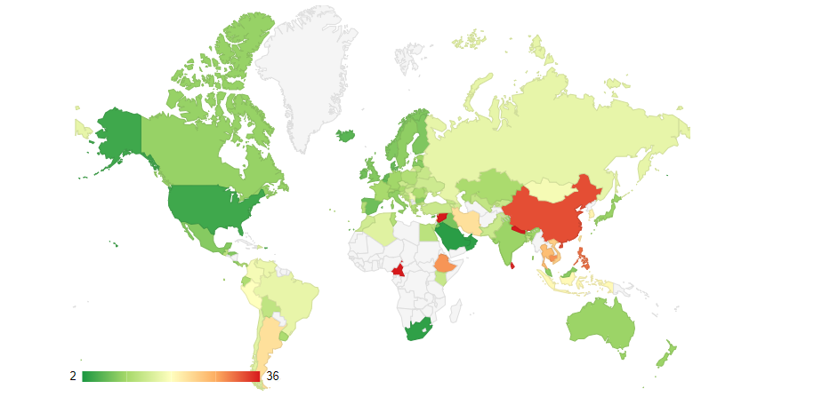 في المرتبة الأولى كأكثر دولة لايتحمل شعبها القدرة على تكاليف العقار، اما في المرتبتين الأخيرتين جاءت