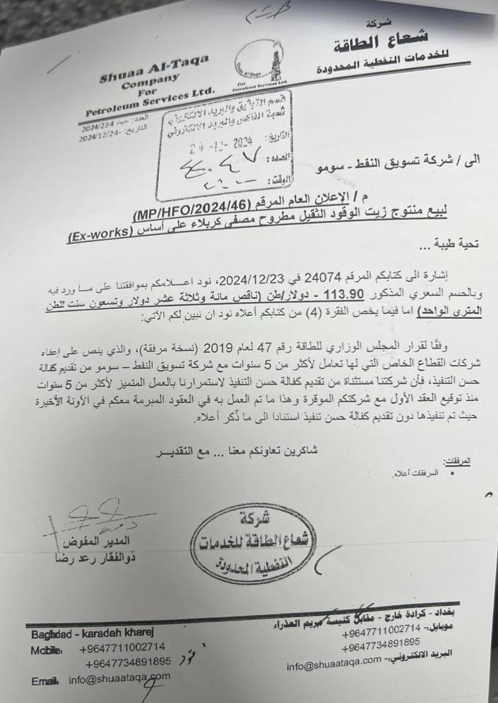 عن تورطها بعمليات تهريب وغسيل أموال، اضافة الى اعفاء الشركة من كفالة حسن الاداء رغم وجود تقارير وكتب رسمية صادرة من شركة