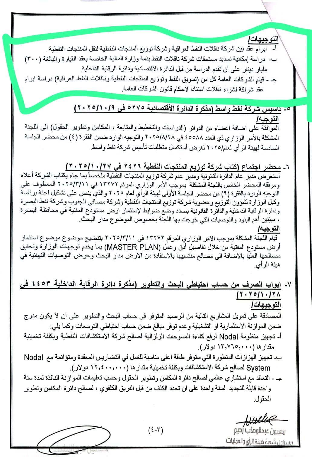 صدور توجيهات بابرام عقد بين شركة الناقلات النفطية وشركة توزيع المنتجات النفطية، ودراسة إمكانية تسديد مستحقات شركة النقالات النفطية بذمة