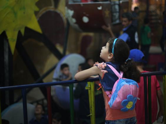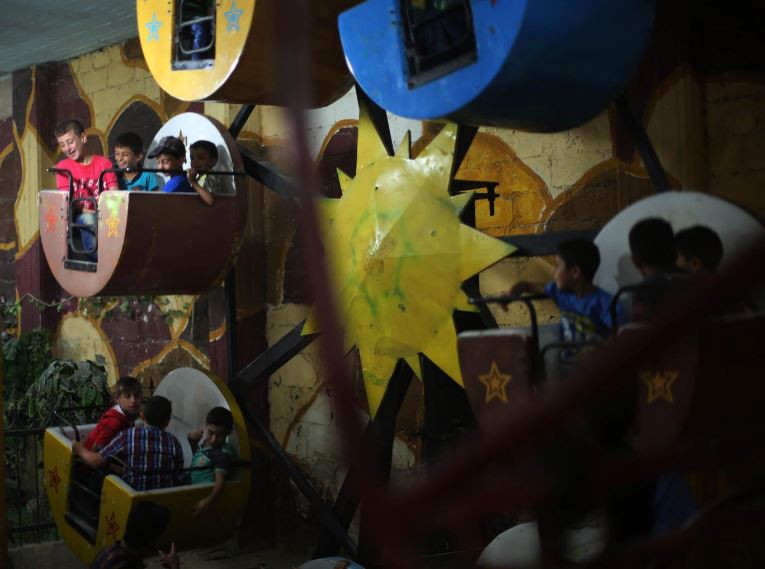 تقول إحدى الفتيات لموظفي اليونيسيف في أثناء زيارتهم للمكان: "أنا وأصدقائي نأتي هنا، لأنه آخر منتزه ما زال صالحًا للعب، فالمكان الذي اعتدنا أن نلعب فيه تم قصفه ولم يعد يعمل".