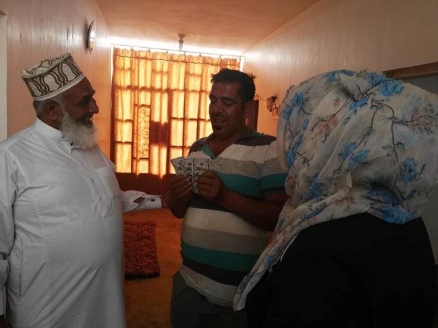 بالصور.. باكستاني يمنح مساعدات مالية لأهالي الرمادي