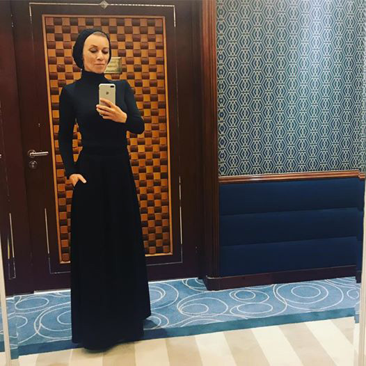 كانت أيضا قد ارتدت الزي المحتشم الطويل أثناء زيارتها إلى