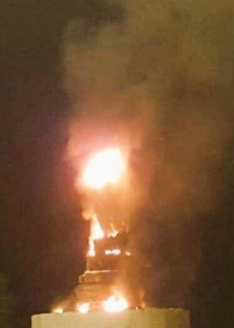 وأوضحت أن "منفذي الحريق، أشعلوا الإطارات وألقوا بعدد منها على التمثال".