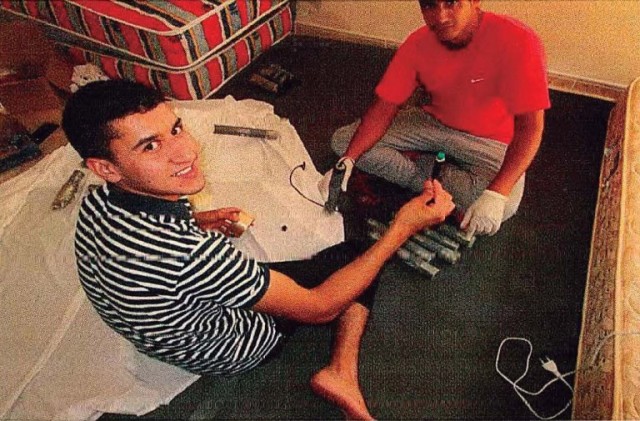 وظهر بين الأشخاص الذين يحضرون المتفجرات في الصور "