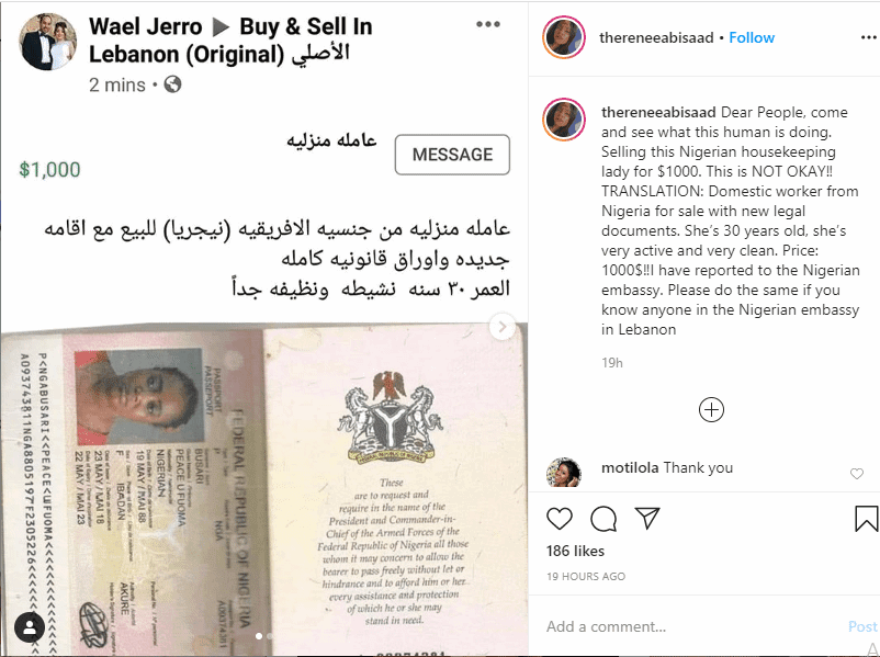 "مقابل 1000 دولار".. القبض على لبناني عرض سيدة نيجيرية للبيع