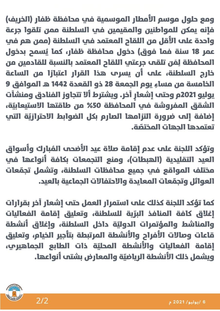 دخول أراضي السلطنة اعتباراً من يوم الجمعة المقبل.