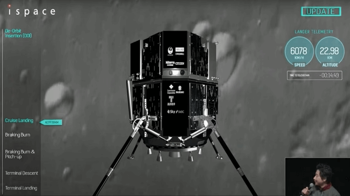 أكدت شركة "آي سبيس" أنه حتى الساعة 8:00 صباحًا بتوقيت اليابان (3 صباحًا بتوقيت دولة الإمارات)، لم يتم الاتصال بين مركبة الهبوط "هاكوتو آر"، ومركز التحكم بالمهمة، وبالتالي تم تأكيد عدم وجود إمكانية لتحقيق هبوط ناجح على القمر، والاتصال بالمركبة.