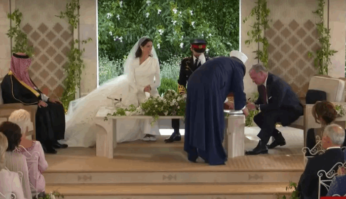وتوجه إمام الحضرة الهاشمية الذي أشرف على عقد القران للأمير حسن حيث وقع في المكان المخصص للشاهد الثاني.