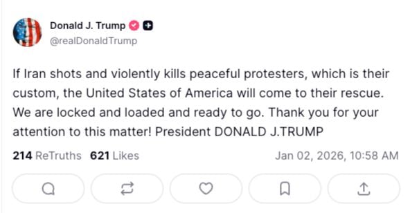 ترامب: سنتدخل فوراً لإنقاذ المتظاهرين السلميين في إيران عند تعرضهم للعنف