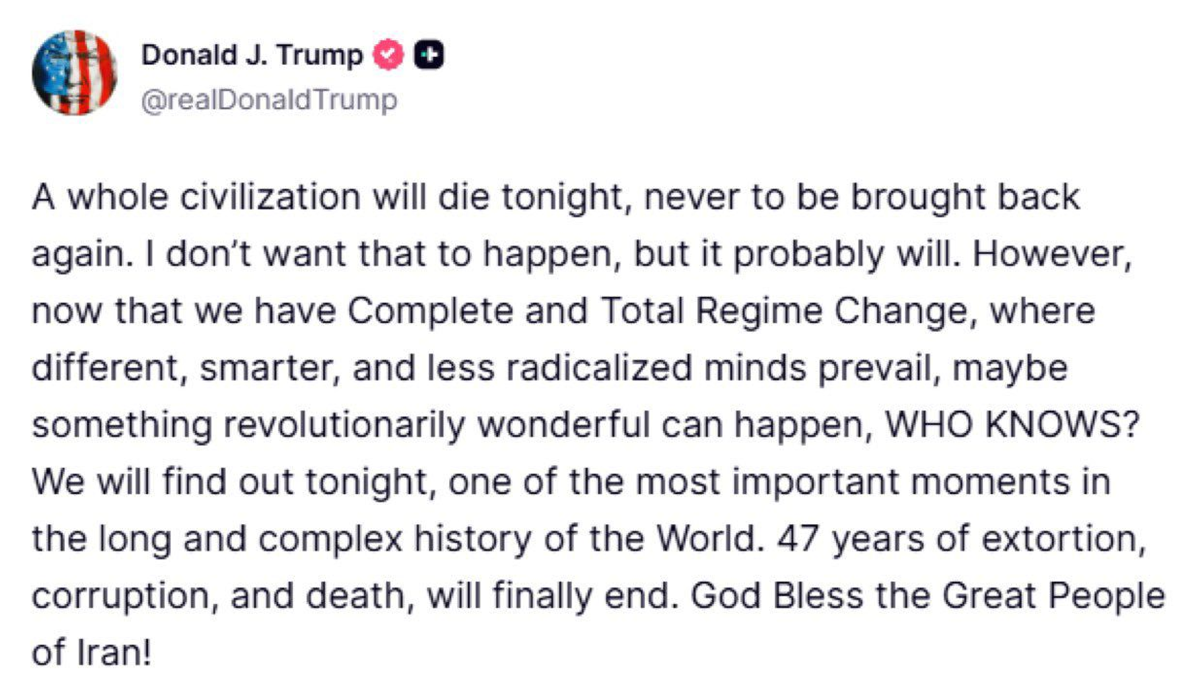 ترامب: حضارة كاملة ستموت الليلة