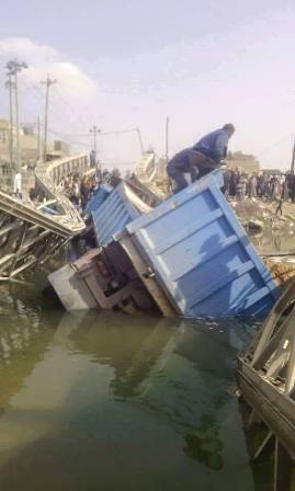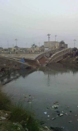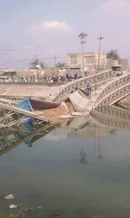 وسط ناحية غماس (70 كم جنوب الديوانية) الى انهياره، بسبب كبر حمولتها وقدم الجسر وحاجته الى أعمال صيانة.