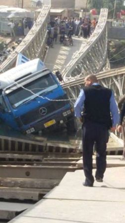 بالصور.. سيارة محملة بالرمل تتسبب بانهيار جسر جنوب الديوانية