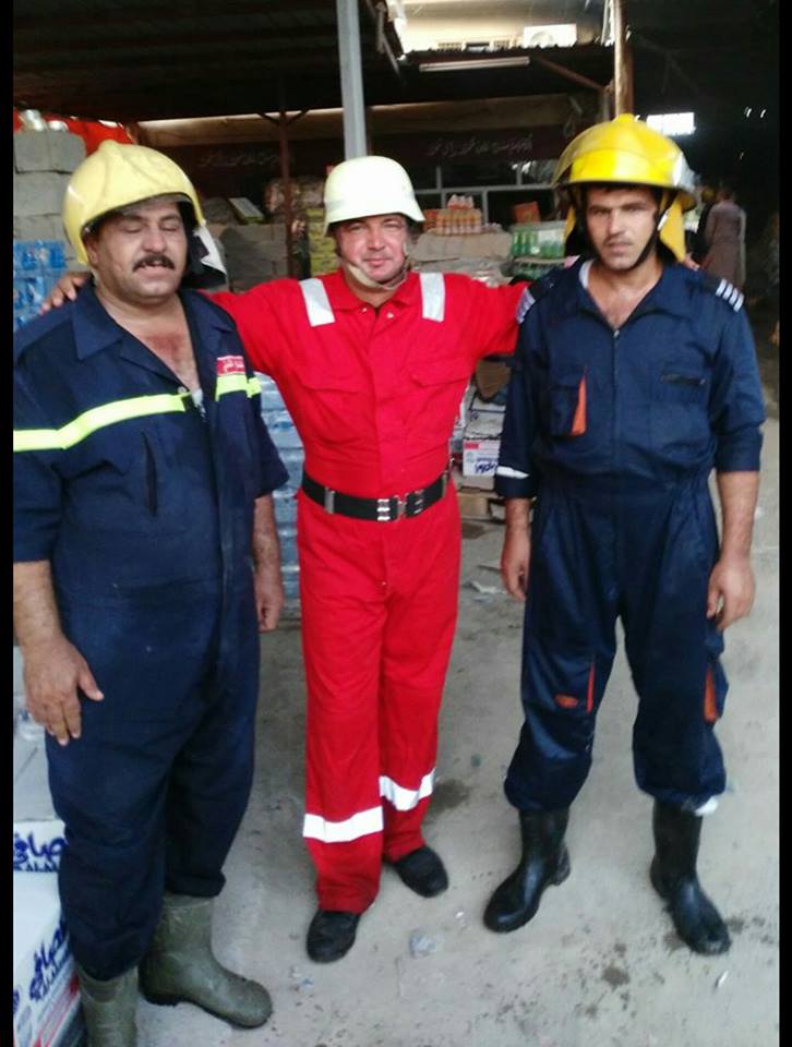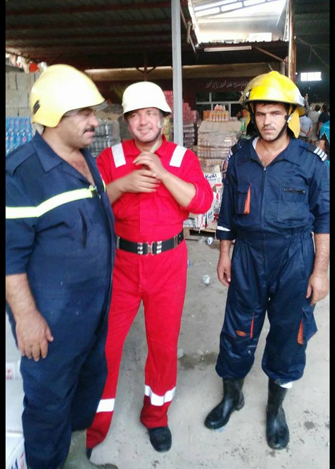 ، ان "حريق هائل اندلع في مخزن للمواد الغذائية في قضاء الخالص على مقربة من طريق كركوك- بغداد، وفجأة توقفت مركبة وترجل منها مدني اخذ على وجه السرعة بارتداء بدلة حمراء ومشاركة فرق الاطفاء في اخماد الحريق".