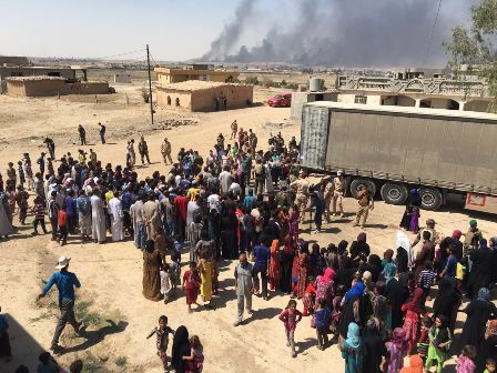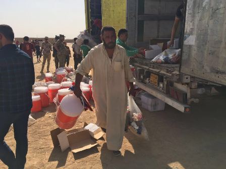 بالصور.. مكتب السيستاني يغيث نازحي القيارة للمرة الثانية