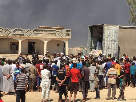 في قرى العوسجة الشرقية والغربية واجحلة والتينة والمخيم الذي فيها وقرية الإمام غربي وقرى اخرى، وتضمنت المساعدات ثلاثة الاف سلة غذائية بالاضافة الى ترامز الماء و ملابس للرجال والنساء والاطفال.