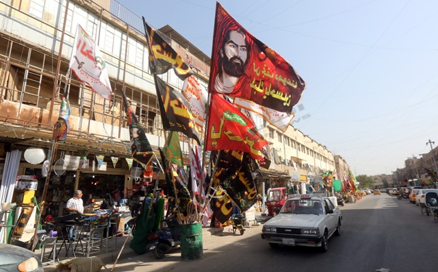 بالصور .. رايات الحسين (ع) تزين شوارع بغداد في شهر الحزن