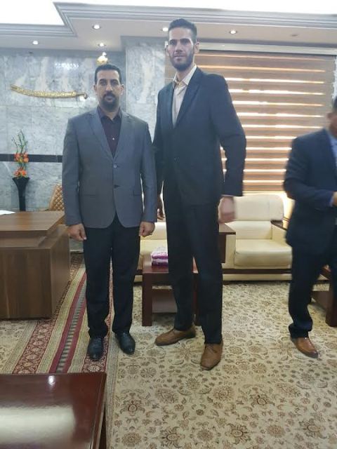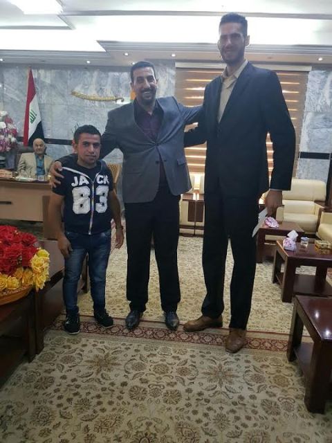 بالصور .. ثاني أطول رجل في العالم يفاجئ مسؤولي وموظفي مجلس ديالى