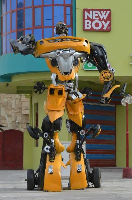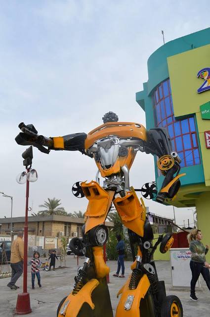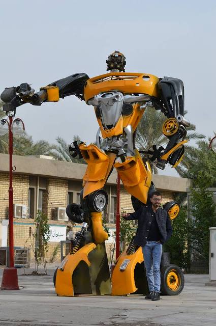 ، تمكن من صناعة شخصية بامبل بي الشهيرة في بغداد"، مبينا ان "ذلك تمت صناعته من سكراب اجزاء السيارات والدراجات المهملة".