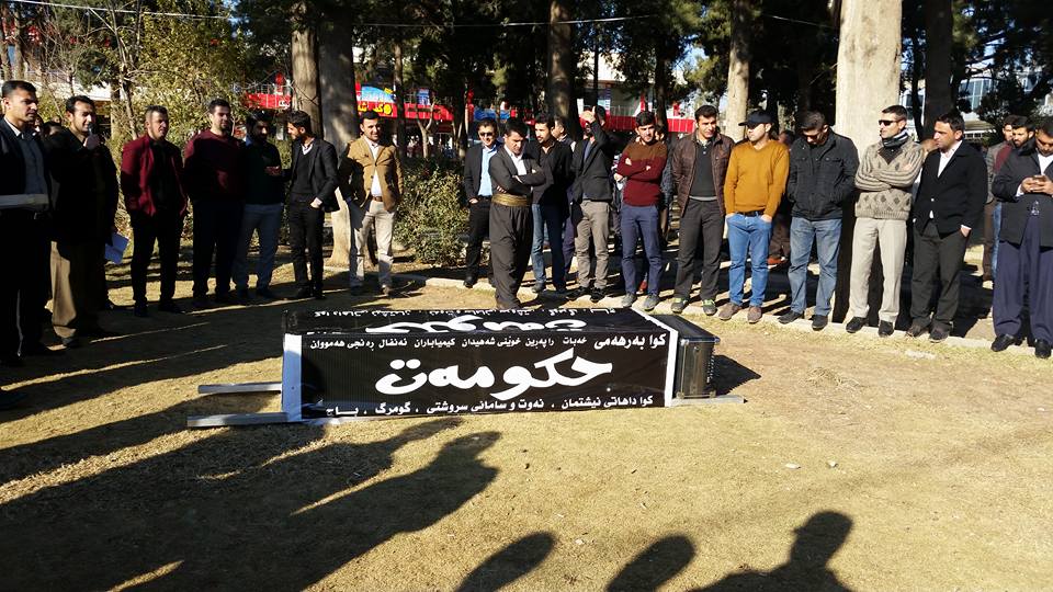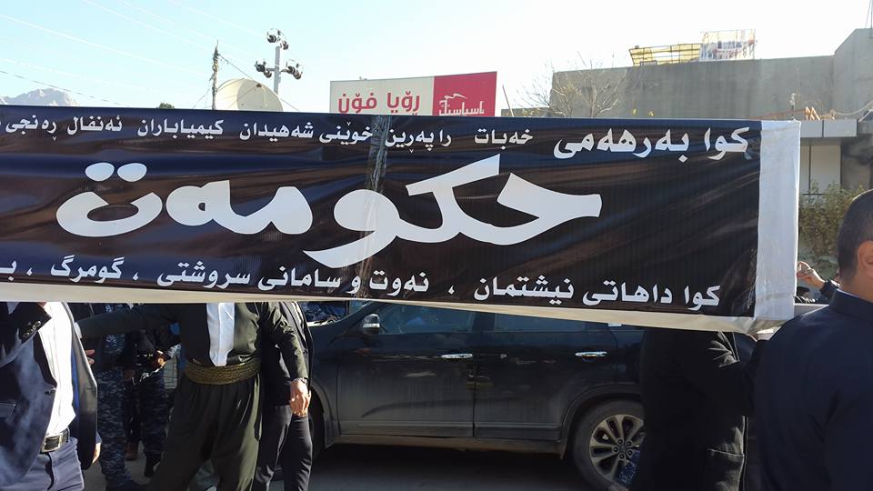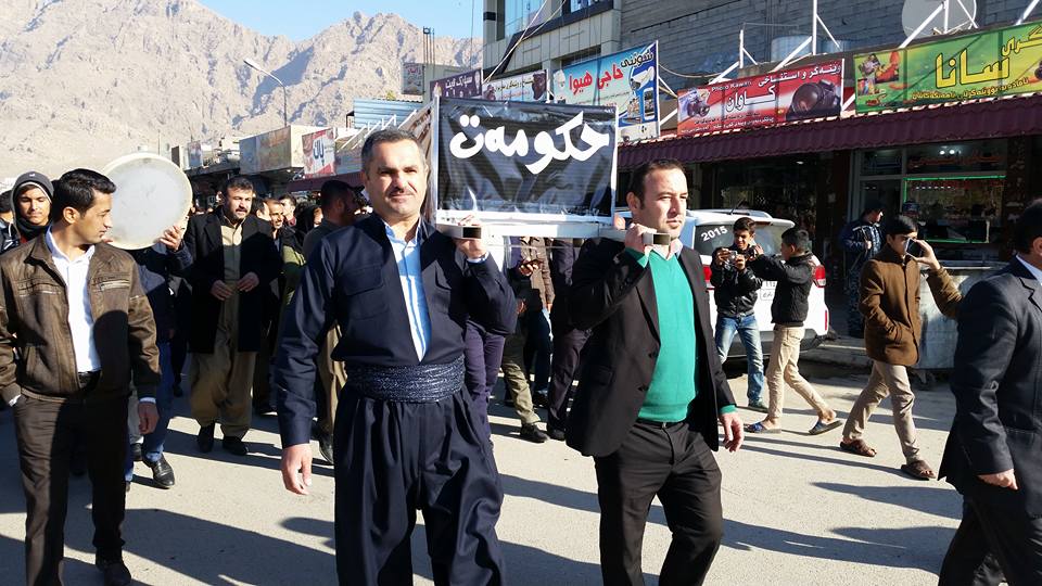 ، أنه "تم الإعلان عن وفاة حكومة الإقليم خلال مظاهرة شارك فيها العشرات من أهالي مدينة رانية"، مبينا أن "المتظاهرين حملو على اكتافهم نعشا للتعبير عن موت الحكومة بسبب ما تعانيه من الفساد والمرض وأنها لم تعد تستطيع خدمة المواطنين".