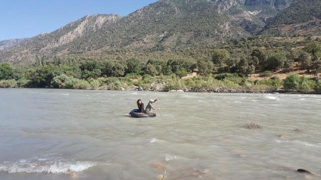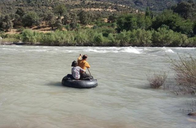 بالصور .. قرويون يروضون مياه هائجة بإطارات مطاطية شمالي دهوك