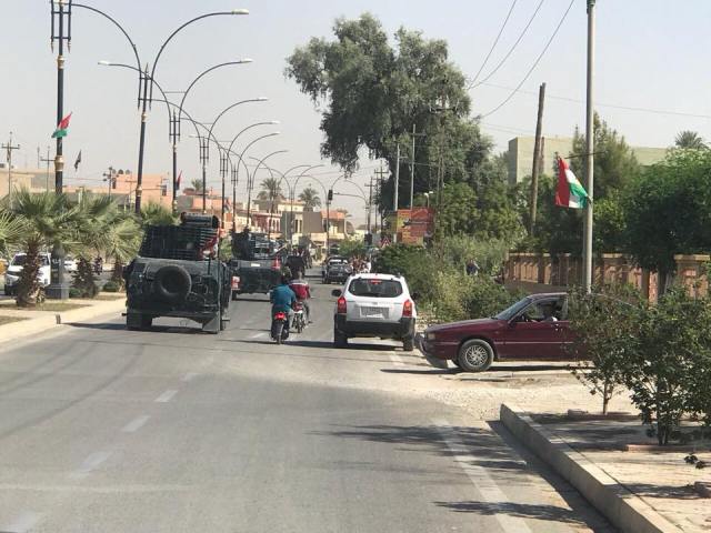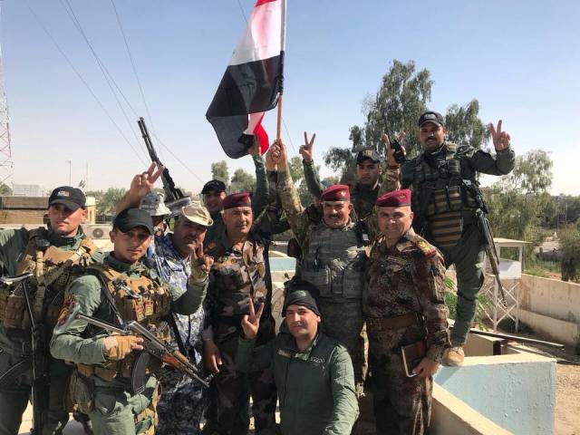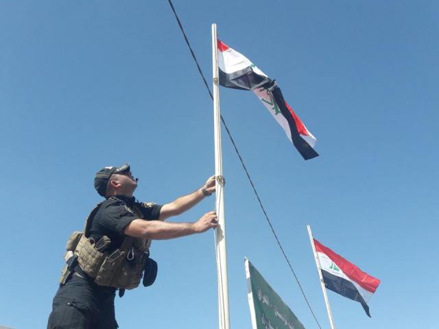 ، والتي بدأت منذ ساعات الصباح الاولى، فيما رفرفت الاعلام العراقية فوق المقرات الامنية الحكومية والسيطرات الامنية بسماء القضاء.
