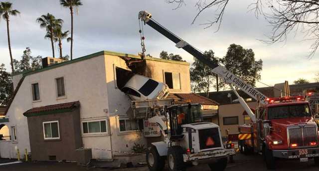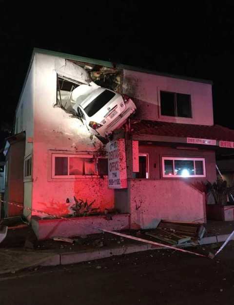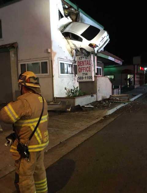 وأثارت صور السيارة العالقة في المبنى خاص بعيادة أسنان، التي نشرتها السلطات المحلية على "تويتر"، ليس فقط التعاطف مع راكبي السيارة، لكن أيضا الدهشة بشأن طريقة وصولها إلى هذا الوضع الغريب.