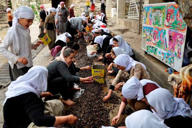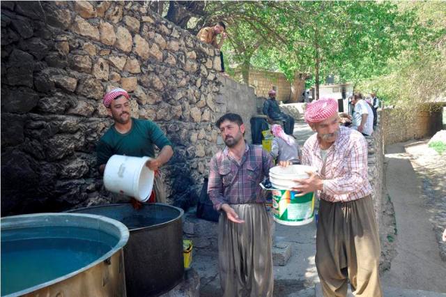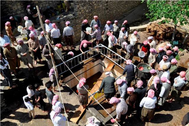بالصور.. مراسم "عصر الزيتون" في معبد لالش الايزيدي