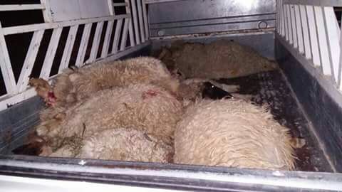 ، صورا لسيارة دهست قطيع من الأغنام على طريق