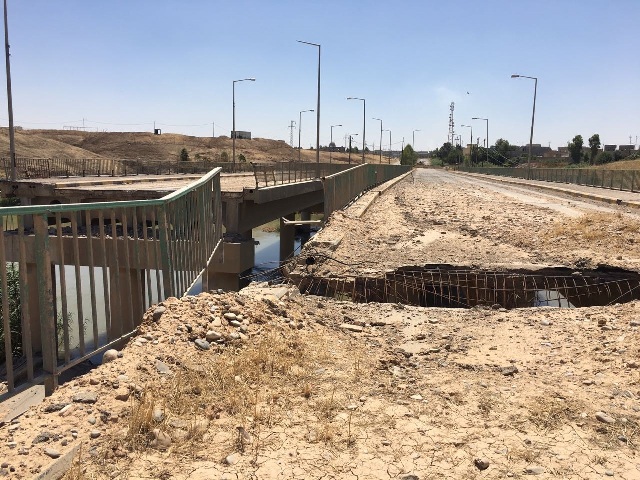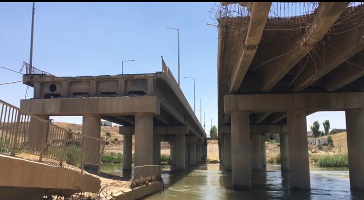 وأظهرت الصور مدى الاضرار التي لحقت بالجسر بعد التفجير الذي تعرض له في الـ16 من تشرين الاول الماضي، من قبل البيشمركة وخاصة بركائزه التي تحتاج الى اعادة بناء عدد منها.