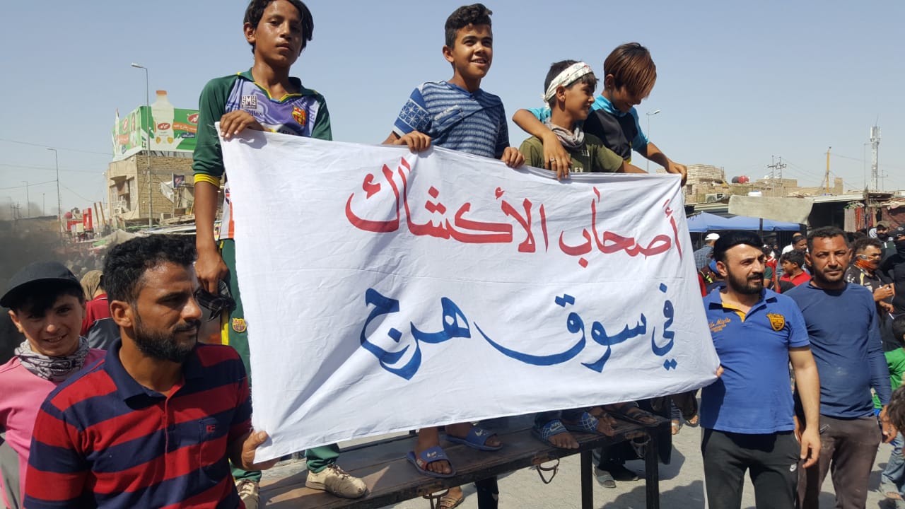 تظاهر العشرات من اصحاب البسطات في ذي قار، الثلاثاء، بعد صدور قرار بترحيلهم من بلدية