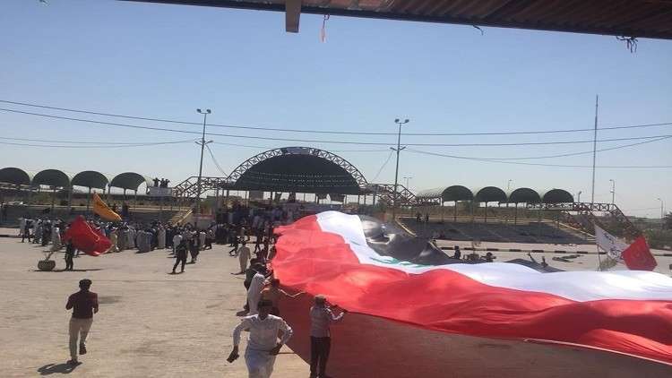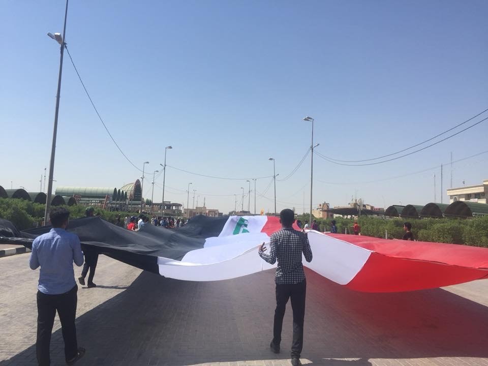 ، الأربعاء، ورفع المعتصمون أطول علم عراقي بلغ طوله 45 مترا، فيما اشار المتظاهرين الى ان العلم سيبقى في