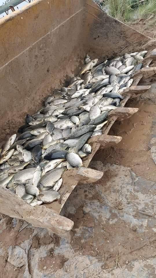 ، إنهم "قاموا بدفن مئات الأطنان من الأسماك النافقة والتي مازالوا يجهلون سبب نفوقها".
