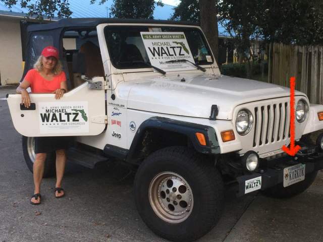 على لوحة تسجيل سيارته، حيث تسمح قوانين المرور بالولاية لوضع اي اسم يختاره مالك السيارة على لوحة التسجيل.