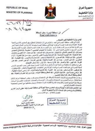 بالوثيقة.. التخطيط تصادق على تحويل ناحية الهارثة في البصرة الى قضاء