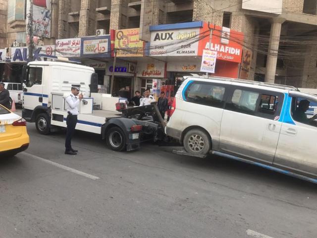 تناقل ناشطون عبر مواقع التواصل الاجتماعي صوراً قالوا، إنها لمركبات تم رفعها من قبل المرور بعد سيرها بالاتجاه المعاكس في بغداد.