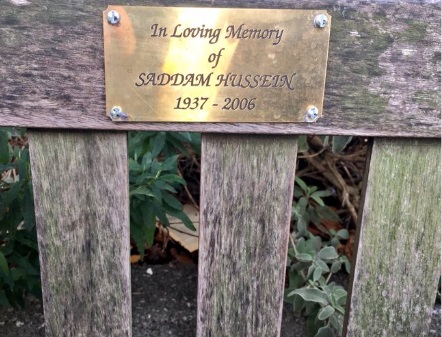 ولا يعرف إن كانت تلك اللوحة التذكارية مجرد مزحة أم أن واضعها من المعجبين بالرئيس العراقي السابق.