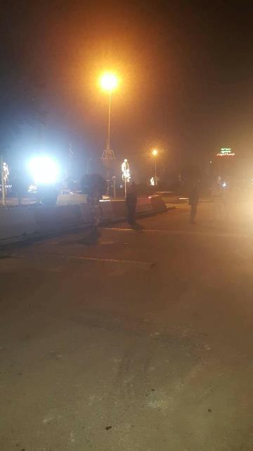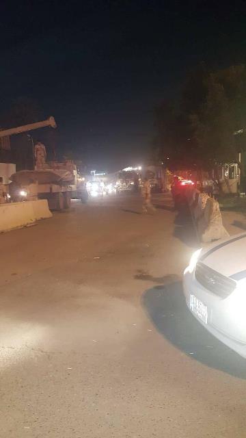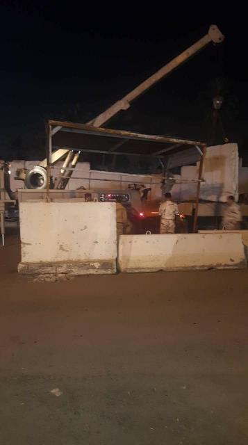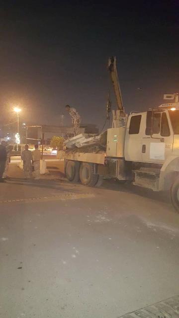 المقدم احمد وعدد من الضباط برفع الصبات الموجودة في ساحة الامام الحسين من جهة جسر ذو الطابقين الذي يربط منطقة الدورة بالكرادة".