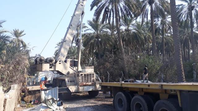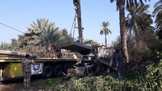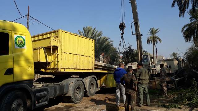 باشر برفع الكتل الكونكريتية من الشارع الذي يربط بين