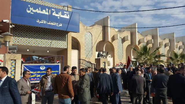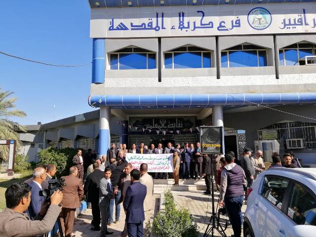 الاعدادية والمتوسطة والابتدائية، إضافة الى غالبية المدارس الأهلية"، مبيناً أن "الكثير من المدرسين والمعلمين احتشدوا مع بداية الدوام الرسمي في مقر فرع