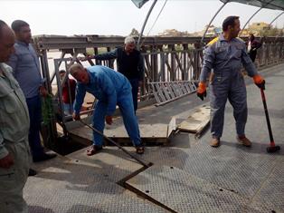 بالصور.. المباشرة بتفكيك جسر الكريعات العائم في بغداد