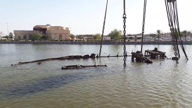 قاموا بانتشال جزء كبير من الحفارة البحرية (كربلاء)، وفي غضون أيام سوف يتم انتشال ما تبقى منها"، مبيناً أن "الحفارة غارقة منذ عام 1980 في مياه شط العرب بالقرب من موقع
